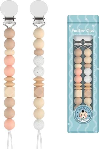 Nos attaches sucettes 2 en 1 s'adaptent universellement à tous les styles de sucettes qui ont un trou pour attacher. Fonctionne parfaitement pour les MAM, les nuks, les sucettes soothie, les bavoirs, les poussettes, les sièges auto et autres.