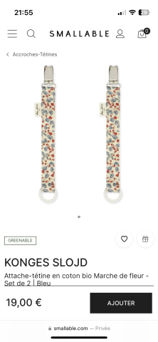 Ce produit est extrait d'une liste de naissance déposée sur Kadolog. Kadolog permet de créer des listes de naissance en toute liberté. Il est possible d'ajouter toutes vos envies cadeaux et de recevoir les dons directement sur votre compte. Avec les dons reçus, vous êtes alors libre d'aller acheter vos produits (comme ce 'Attache tetine ') où et quand vous le souhaitez.