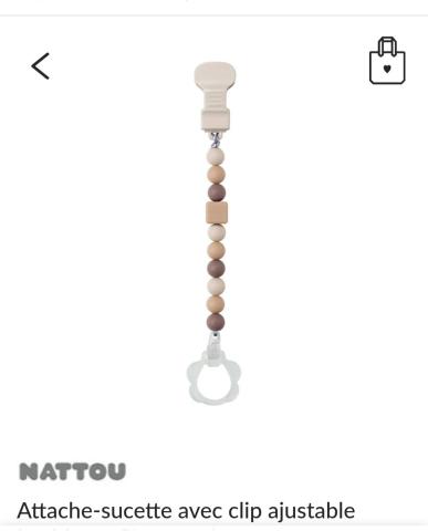 Ce produit est extrait d'une liste de cadeaux (Anniversaire, Noël, ...) déposée sur Kadolog. Kadolog permet de créer des listes de cadeaux (Anniversaire, Noël, ...) en toute liberté. Il est possible d'ajouter toutes vos envies cadeaux et de recevoir les dons directement sur votre compte. Avec les dons reçus, vous êtes alors libre d'aller acheter vos produits (comme ce 'Attache tetine ') où et quand vous le souhaitez.