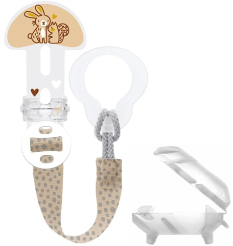 MAM Broche tétine adaptable à tout type de tétine, de dentition et de jouets, longueur réglable, avec housse de protection pour tétine, lavable, neutre, assortiment de 1 pièce