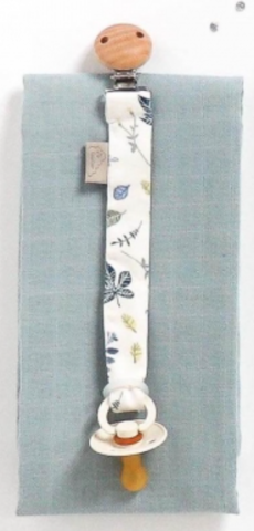 en toute liberté. Il est possible d'ajouter toutes vos envies cadeaux et de recevoir les dons directement sur votre compte. Avec les dons reçus, vous êtes alors libre d'aller acheter vos produits (comme ce 'Attache-tétine Feuilles bleues