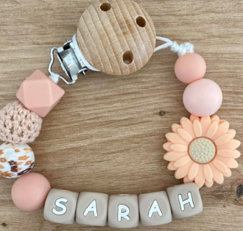 en toute liberté. Il est possible d'ajouter toutes vos envies cadeaux et de recevoir les dons directement sur votre compte. Avec les dons reçus, vous êtes alors libre d'aller acheter vos produits (comme ce 'Attache tétine personnalisé