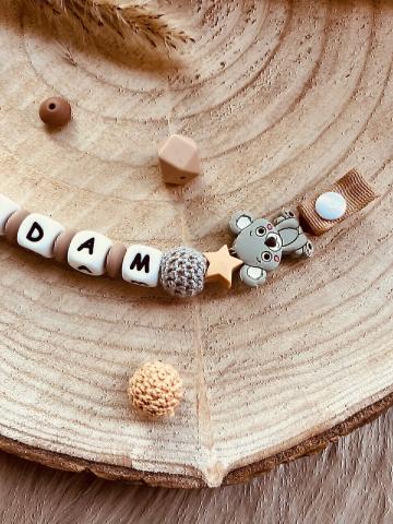 Attache tétine personnalisée avec le prénom; qui reste secret jusqu’à leur arrivée ;-)