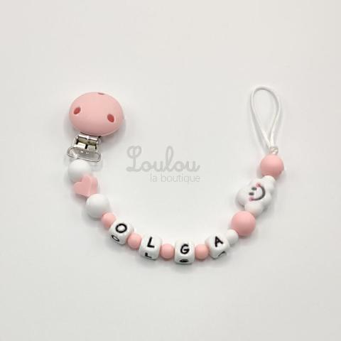 Loulou la boutique propose des attaches tétines personnalisés en silicone et bois. Un cadeau de naissance idéal.