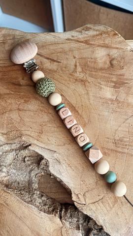 Attache tétine « modèle LLino » Coloris kaki et bois. Toutes nos perles sont totalement adaptées à la dentition de bébé et résistantes à la salive. Clip au choix Le délai actuel de confection est de 2 semaines
