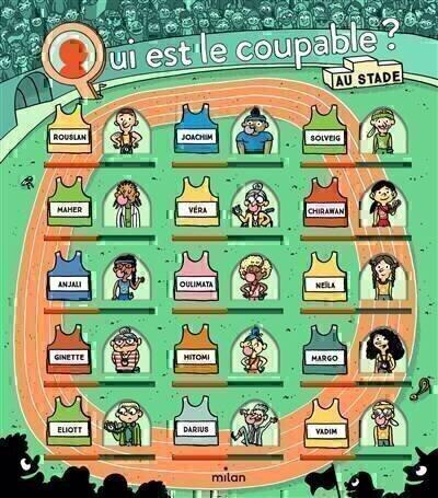 Qui a volé une médaille ? Qui a semé des clous sur la piste ? Qui a trafiqué le matelas du saut à la perche ?Lis les drôles d'histoires des athlètes du stade et, dans chacune, découvre qui est le coupable grâce aux indices parsemés dans le récit. Pour t'aider, ferme les fenêtres des personnages qui ne correspondent pas à la description du suspect. À la fin, il ne t'en restera qu'un ! 15 enquêtes et 15 coupables potentiels : sauras-tu tous les identifier ?