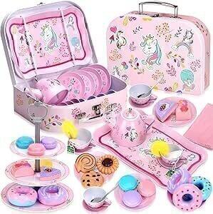 Auney Service à Thé pour Enfants 36 Pcs, étui de Transport, Jeu de Simulation pour Filles, Service à Thé en étain avec Sachets de Thé et Tranches de Citron, 13 Jouets à Dessert pour Enfants (Licorne) : Amazon.fr: Jeux et Jouets