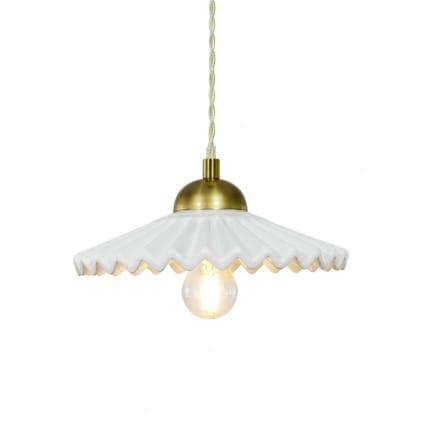 Suspension en céramique avec son équipement en textile et métal blanc.