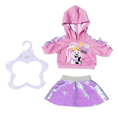 Enfile cette tenue rose à ta poupée BABY born et elle brillera de mille feux ! Passe ta main sur les sequins et ils changent de couleur : du rose clair au rose foncé !