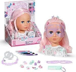 BABY born Tête de Coiffure Créative - Tête de Coiffure de poupée pour Les Enfants à partir de 3 Ans - Tête de Maquillage avec Cheveux Roses, marqueurs pour Peindre & Plus de 20 Autres Accessoires : Amazon.fr: Jeux et Jouets