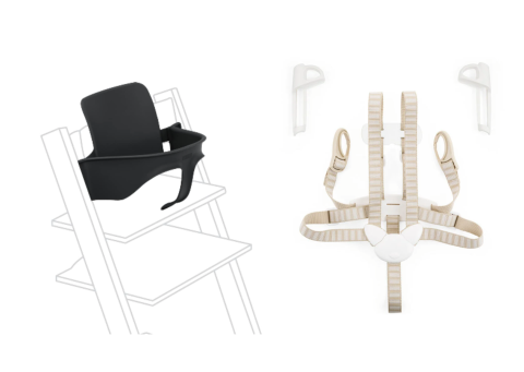 Lot baby set et harnais pour la chaise haute Stokke. Prix neuf pour le lot : 108€. Acheté d'occasion 40€