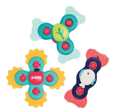 Découvrez un lot de trois Baby spinners colorés pour jouer à tous moments. Tels des toupies ou des hélices, ces petits jouets d’éveil rotatifs émerveillent les enfants comme les grands !