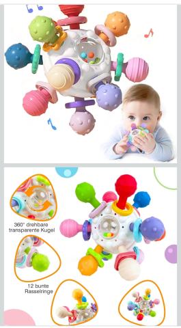 Baby Teething Toy from 3 Months, Sensory Rattle, Silicone Grip Ball, Montessori Motor Skills Toy for Baby from 0 6 9 Months 1 Year : Amazon.com.be: Toys