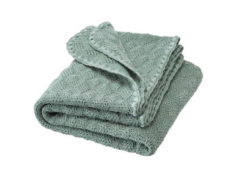 Kuschelig weiche, leichte Babydecke aus Bio-Merinowolle (kbT). Edles Design. Hautfreundlich und temperaturausgleichend. Maße 80x100cm. GOTS-zertifiziert, Farbton jade