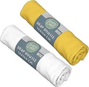 BabyCalin - Lot de 2 draps housse 70x140x17cm Moutarde/blanc certifié OEKO-TEX : Amazon.com.be: Cuisine et maison