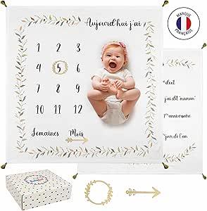 Babyfun Couverture Étape Bébé Imprimée Double Face - Tapis Photos Bébé Mois - Cadeau Naissance Fille ou Garçon - Label Oeko-TEX - Accessoires et Boîte Cadeau Inclus : Amazon.com.be: Bébé et Puériculture