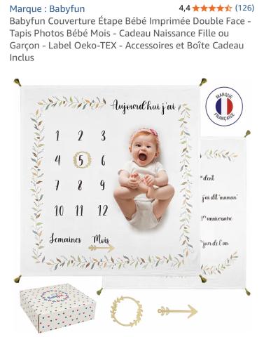 en toute liberté. Il est possible d'ajouter toutes vos envies cadeaux et de recevoir les dons directement sur votre compte. Avec les dons reçus, vous êtes alors libre d'aller acheter vos produits (comme ce 'Babyfun Double-Sided Printed Baby Step Blanket – Baby Month Photo Mat – Newborn Gift Girl or Boy – Oeko-TEX Label – Accessories and Gift Box Included : Amazon.com.be: Baby Products