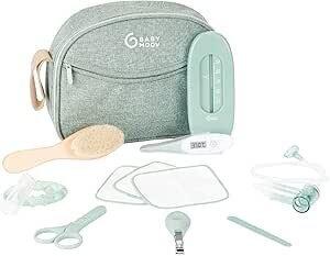 Babymoov Trousse de Soin Bébé EcoResponsable - 10 Accessoires dont Brosse Bois avec Poils naturels, Lingettes Réutilisable, Thermomètre digital, Thermomètre de bain - Tissu recyclé - Vert d'eau : Amazon.fr: Bébé et Puériculture