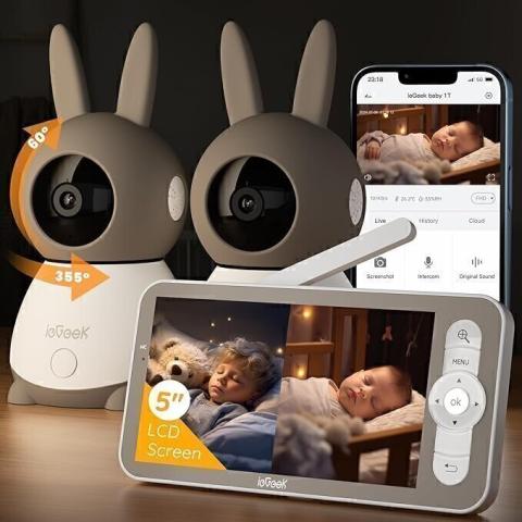 ieGeek 2K/3MP 5" Babyphone 2 Caméra Bebe,PTZ 360° Baby Phone Vidéo connecté Smartphone, Visiophone avec Alertes Intelligentes/Vision Nocturne/Suivi Automatique :