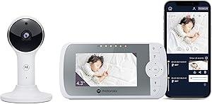 Motorola Nursery Babyphone VM64 - Moniteur vidéo pour bébé 4,3" - WiFi - Avec caméra - Application smartphone - Support magnétique - Grande portée - Audio bidirectionnel - Zoom numérique - Température
