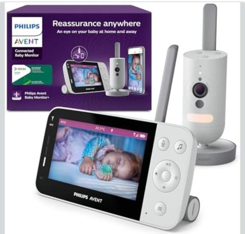 Procurez-vous le babyphone vidéo Sense IQ SCD971/26 de Philips Avent et bénéficiez des dernières technologies pour garder un œil sur votre bébé jour et nuit. Ce système avancé associe la surveillance de la respiration et du sommeil sans port, une unité parentale ultra-performante, ainsi que des fonctions intelligentes telles que la détection des pleurs avec traduction automatique. L'application Baby Monitor+ vous permet de rester connecté à votre enfant partout.