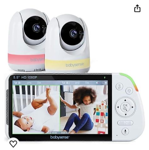 Babysense Moniteur Bébé 5.5” HD 1080p Écran Partagé, Vidéo avec Caméra et Audio, Deux Caméras PTZ, Veilleuse RGB, Portée 300m, Audio Bidirectionnel, Zoom 4X, Batterie 5000mAh : Amazon.fr: Bébé et Puériculture