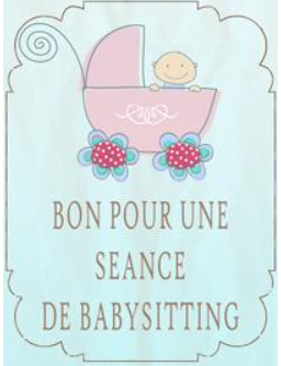 Parce que les jeunes parents ont aussi besoin de moments pour eux, vous pouvez nous offrir une soirée de babysitting (ici deux soirées dans le budget prévu) pour nous permettre de souffler un peu à deux: soit vous proposez de donner de votre personne en venant garder nos petits une soirée, soit vous participez à la rémunération de la babysitter :-)