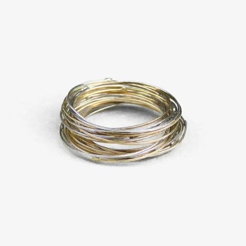 Bague composée de dix anneaux très fins en or et dix en argents entrelacés. Matériaux : or 18 carats & argent 925 Épaisseur des anneaux : 0,5 millimètres