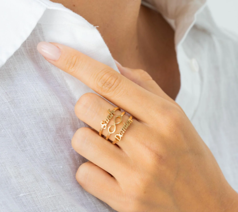 Une bague avec les prénoms des enfants... Cela fait des années que j'en rêve... Plutôt dorée taille 60