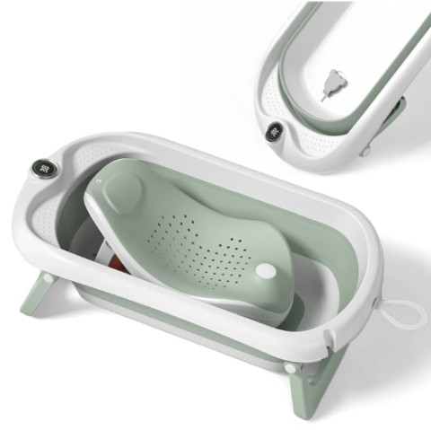 Baignoire pliable pour un gain de place indéniable. Sont inclus avec, un transat nouveau-né ainsi qu'un thermomètre pour un max de confort et de sécurité. Idéal et indispensable vu que nous avons une douche à la maison :)
