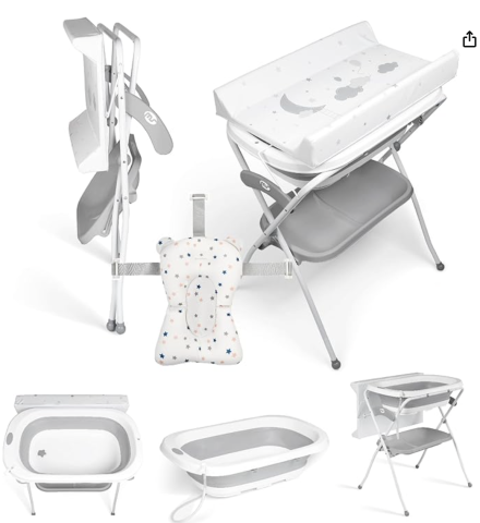 Baignoire haute pliable avec son réducteur et son matelas à langer incorporé