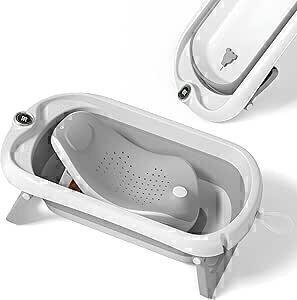 Baignoire Bébé Pliable XXL Avec Transat De Bain Pour Bebe & Thermomètre Intégré - Baignoire Enfant Avec Siege De Bain Pour Bebe - baignoire Bebe Sur Pied