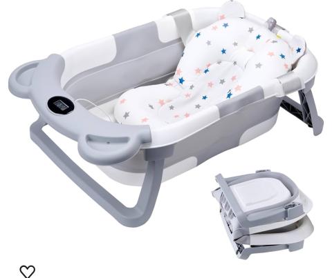Baignoire Pliante avec Thermometre Bain et Bouchon de Vidange, Beignoire Bébé Pliante avec Coussin Baignoire Bebe, Antidérapant Baignoire Pliable Bébé 0-2ans