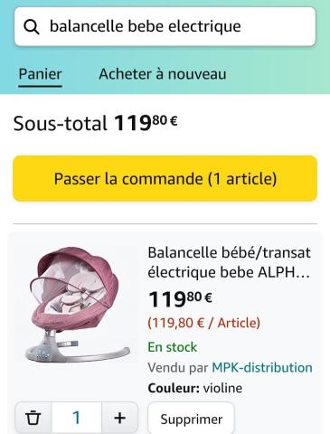 Ce produit est extrait d'une liste de naissance déposée sur Kadolog. Kadolog permet de créer des listes de naissance en toute liberté. Il est possible d'ajouter toutes vos envies cadeaux et de recevoir les dons directement sur votre compte. Avec les dons reçus, vous êtes alors libre d'aller acheter vos produits (comme ce 'Balancelle électrique (Amazon) ') où et quand vous le souhaitez.