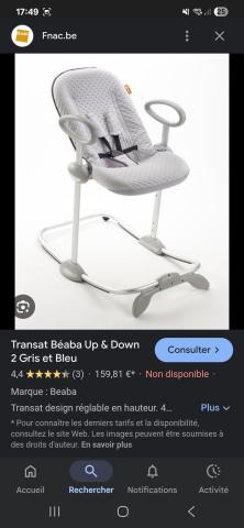 Ce produit est extrait d'une liste de naissance déposée sur Kadolog. Kadolog permet de créer des listes de naissance en toute liberté. Il est possible d'ajouter toutes vos envies cadeaux et de recevoir les dons directement sur votre compte. Avec les dons reçus, vous êtes alors libre d'aller acheter vos produits (comme ce 'Balancelle-relax ') où et quand vous le souhaitez.