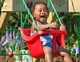 Un siège de balançoire sûr, assurant un bon soutien et aux couleurs vives destiné aux plus petits visiteurs de l'aire de jeu.