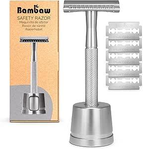 Bambaw Rasoir Sûreté Argenté Avec Stand & 5 Lames | Zéro Déchet | Mécanique | Rasage Manuel | Pour Homme et Femme : Amazon.com.be: Beauté et Parfum
