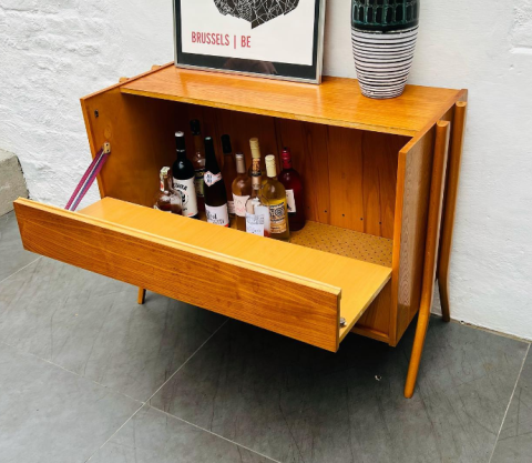 Un bar vintage avec grand espace de stockage pour ranger de bonnes bouteilles de whisky et autres petits plaisirs.