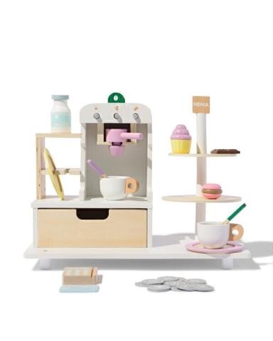Avec ce bar à café en bois, vous transformez la chambre de vos enfants en un coin de jeu convivial. Adapté aux enfants de 2 à 6 ans, le bar à café est le jouet idéal pour créer son propre café. Le bar comporte un tiroir et une étagère, et l'ensemble est livré avec toutes sortes d'accessoires ludiques, tels que des gourmandises, des tasses à café et même un terminal de paiement.