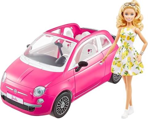 Barbie et sa Fiat 500, Cofret véhicule 4 Places Rose et poupée avec Habillage et Accessoires, Cadeau pour Enfants de 3 à 7 Ans, HGV03 : Amazon.com.be: Jouets