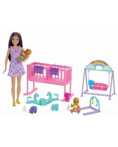 BARBIE LA NURSERIE DE SKIPPER + BB +ACC Skipper doit s'occuper des bébés. Lit balancelle, balançoire et des accessoires tels que des biberons, des couvertur...