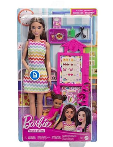 Barbie-coffret barbie professeur-poupée brune et poupée enfant