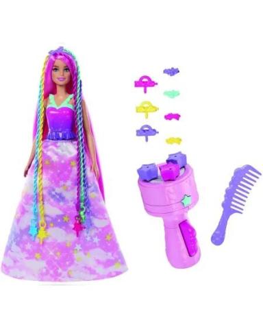 BARBIE TWIST N'STYLE Amuse-toi à coiffer les longs cheveux (20 cm) de Barbie. Extensions colorées et machine à tresses incluses. Possibilité de l'essayer su...