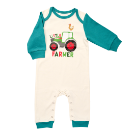 Indispensable dans chaque trousseau de bébé ! La barboteuse pour bébé à manches longues de Fendt, avec son magnifique imprimé tracteur sur le devant, convainc par son confort. Avec col américain très pratique et boutons-pressions au niveau de l’entrejambe