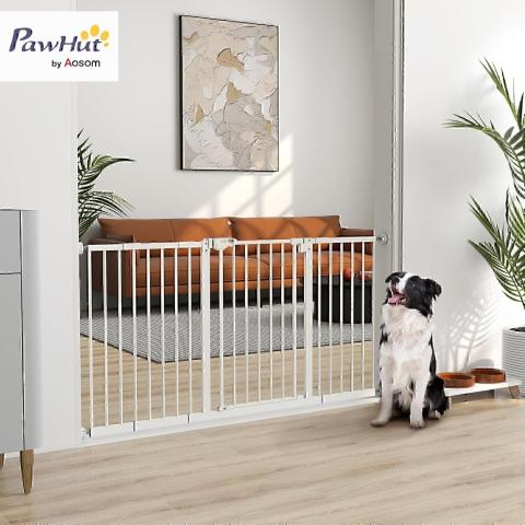 PORTE AJUSTABLE : S'adapte aux ouvertures d'escalier ou de porte de 74 - 80, 91,5 - 100, 104 - 117,5, 121,5 - 130 et 141,5 - 147,5 cm grâce aux extensions incluses.