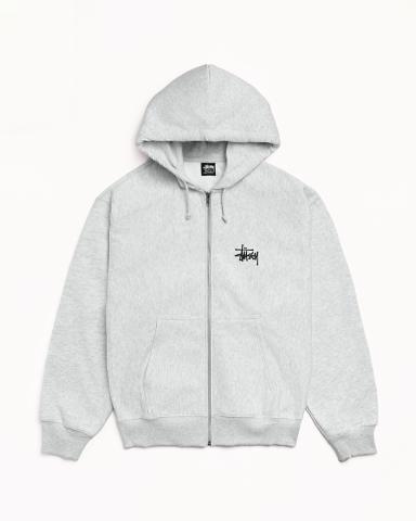 Relaxed fit ash heather zip-front hoodie in a heavyweight 430gsm cotton blend fleece. Screenprinted Stüssy basic logo. Shop the Stüssy Europe store.