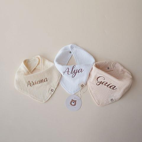 Notre bavoir en mousseline personnalisé est fabriqué à partir du coton biologique le plus doux, conçu pour absorber délicatement la salive tout en gardant les vêtements de votre bébé au sec. Le tissu léger et respirant garantit un confort tout au long de la journée, et il est parfait pour attacher un clip de sucette. U