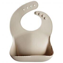 Avec le bavoir en silicone de Mushie, votre petit restera toujours propre et sec pendant le repas, grâce à sa matière déperlante.