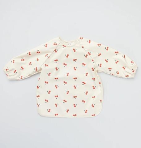 Un bavoir tablier facile à nettoyer pour les repas de bébé grâce à sa matière imperméable. Manches longues avec poignets élastiqués. Fermeture au dos par boutons à pression.