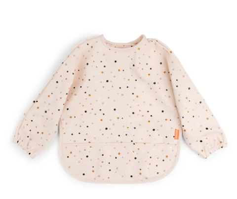 Bavoir à manches à pois pour éviter toutes les futures catastrophes des repas :).